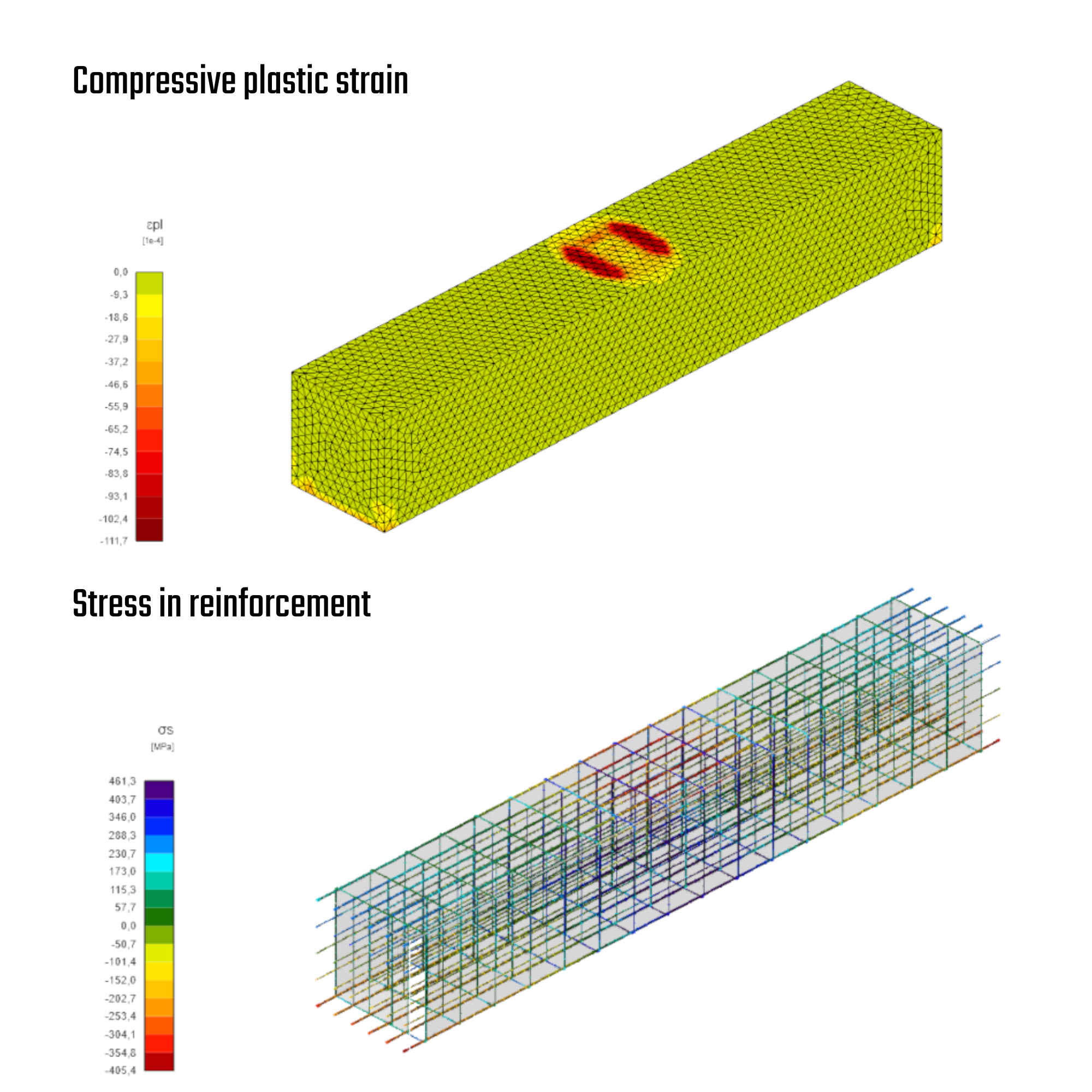 The analysis utilizes the Compatible Stress Field Method (CSFM) in three dimensions. The outcomes derived from CSFM are meticulously validated against simulations conducted using the Concrete Damage Plasticity (CDP) model as well as traditional verification methodologies, ensuring a high degree of reliability and precision in the 3D predictions.
