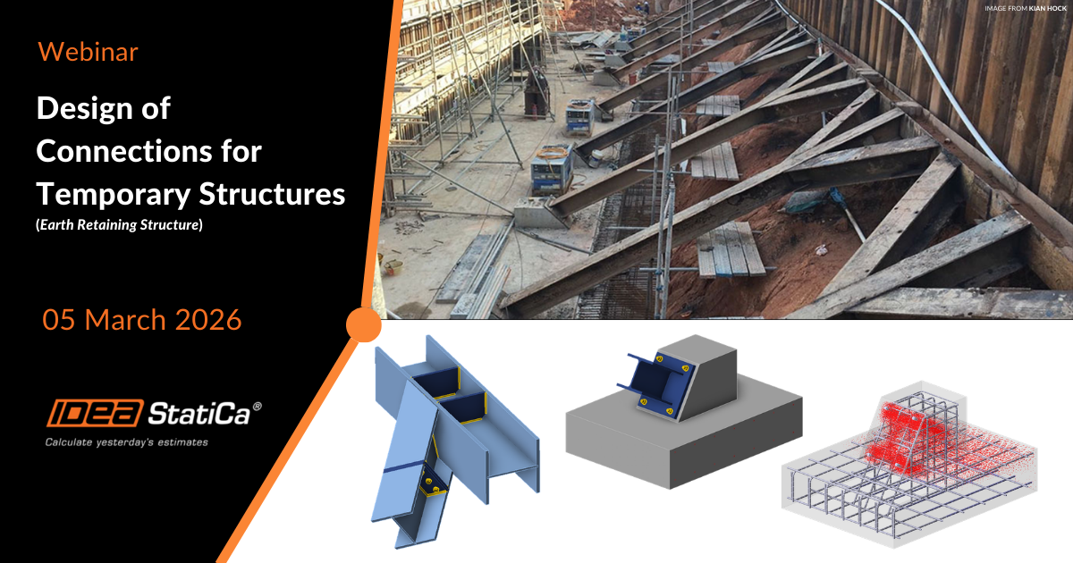 While IDEA StatiCa is known for handling designs of complex connections and concrete D-regions for permanent structures, in this webinar it will be something different that many engineers often underestimated. We will demonstrate how to design the connections for the strutting system of a sheet pile retaining wall for deep excavation works as well as the design of reinforcement and anchoring of its thrust block, which is commonly designed using spreadsheets. During the session, you will also see various use case of temporary structures application (e.g. console brackets for concreting of bride girders, TERS/ERSS, Tunnel shoring, climbing platforms for high-rise buildings, etc.) that you thought would never be designed using IDEA StatiCa.
